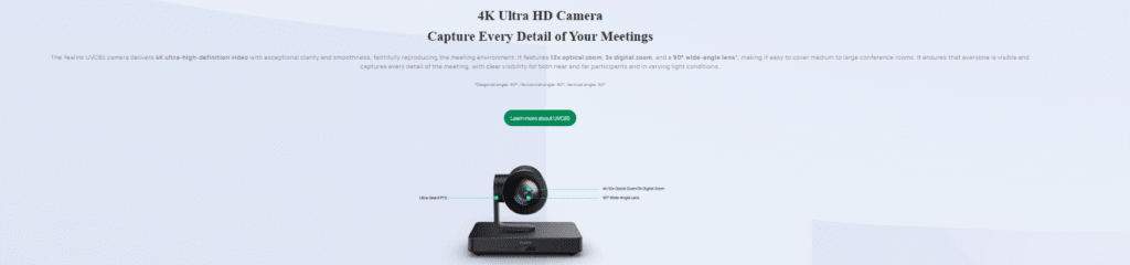 ה‑Yealink UVC85 היא מצלמת PTZ חכמה ברזולוציית Ultra HD 4K, המתוכננת במיוחד לסביבות שיחות וידאו מוספות. היא מאפשרת חיבור BYOD (הבאת המכשיר שלך) פשוט דרך קו USB‑C, עם יכולות אודיו משולבות, ניהול מרכזי ותמיכה בתכונות מתקדמות כגון זום אופטימי, Auto‑Framing ועוד.