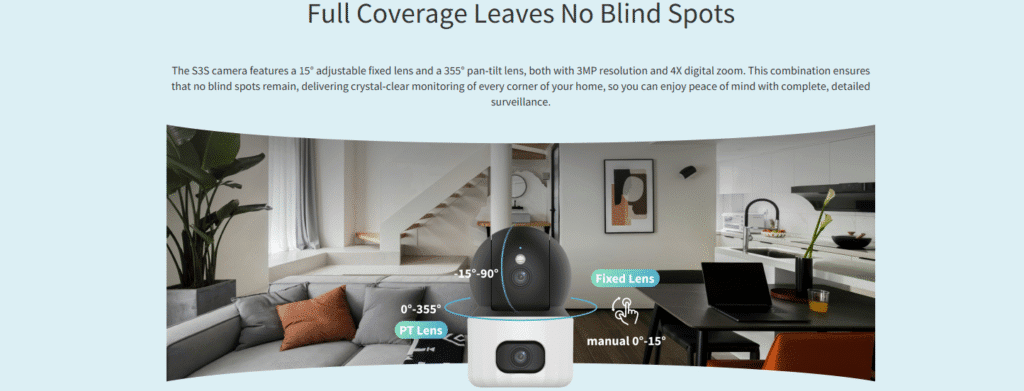Uho‑S3S‑M55D — מצלמת אבטחה לבית עם שתי עדשות חכמה עם ראייה כוללת ופרטים מדויקים