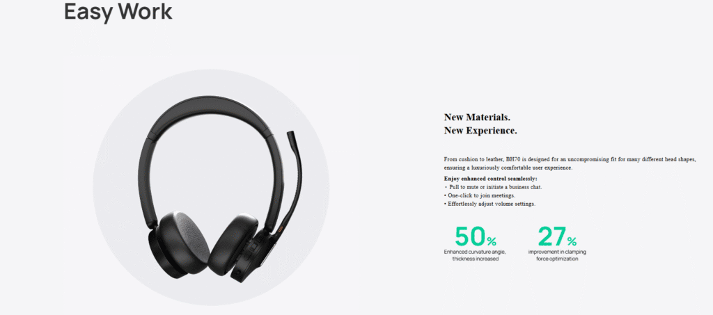 ה־Yealink BH70 הוא פתרון אלחוטי מתקדם שפותח במיוחד לעולם העבודה המודרנית — משרדים, עבודה מהבית, שיחות מרובות ועוד. האוזניות משלבות קישוריות Bluetooth 5.2, מערכת מיקרופונים חכמה עם סינון רעשים, נוחות לבישה למשך כל היום וחיי סוללה מרשימים — כל זאת במוצר שקול ולביש במיוחד.