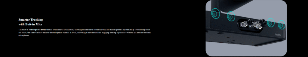 ה-Yealink SmartVision 80 היא מצלמת PTZ חכמה המיועדת לפגישות וידאו באיכות גבוהה, עם יכולות AI מתקדמות המבטיחות חוויית משתמש מעולה.