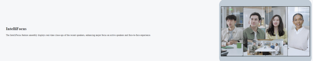-יכולות בינה מלאכותית (AI) מהמתקדמות בשוק – IntelliFocus, Presenter Tracking, Speaker Tracking, Auto Framing, IntelliFrame (במיוחד במערכות MTRoW), Video Fence, תמיכה ב־Multi‑Camera IntelliFocus.